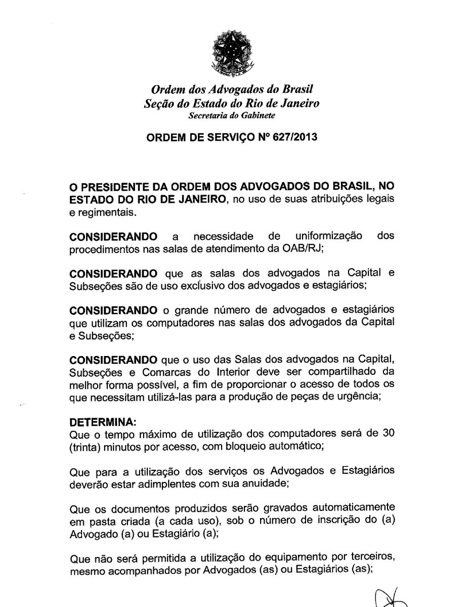 A OAB Seccional Rio de Janeiro realizará uma importante atualização de sistema nos computadores utilizados pelos profissionais, conforme estabelece a Ordem de Serviço 627/2013.