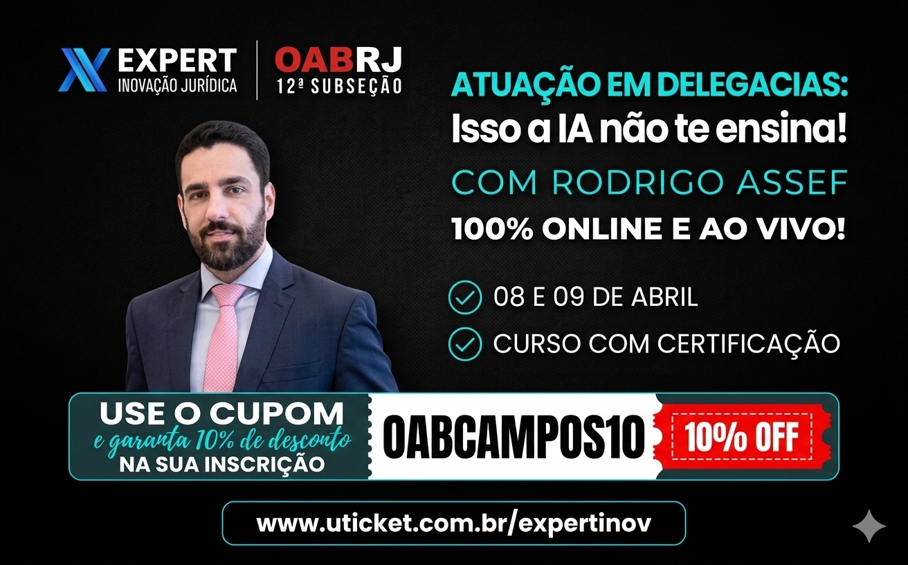 A 12ª Subseção da OAB/RJ, em parceria com a Expert Inovação Jurídica, traz uma oportunidade imperdível para a advocacia criminalista de Campos dos Goytacazes. Estão abertas as inscrições para o curso “Atuação em Delegacias: Isso a IA não te ensina”, ministrado pelo renomado advogado criminalista Rodrigo Assef.