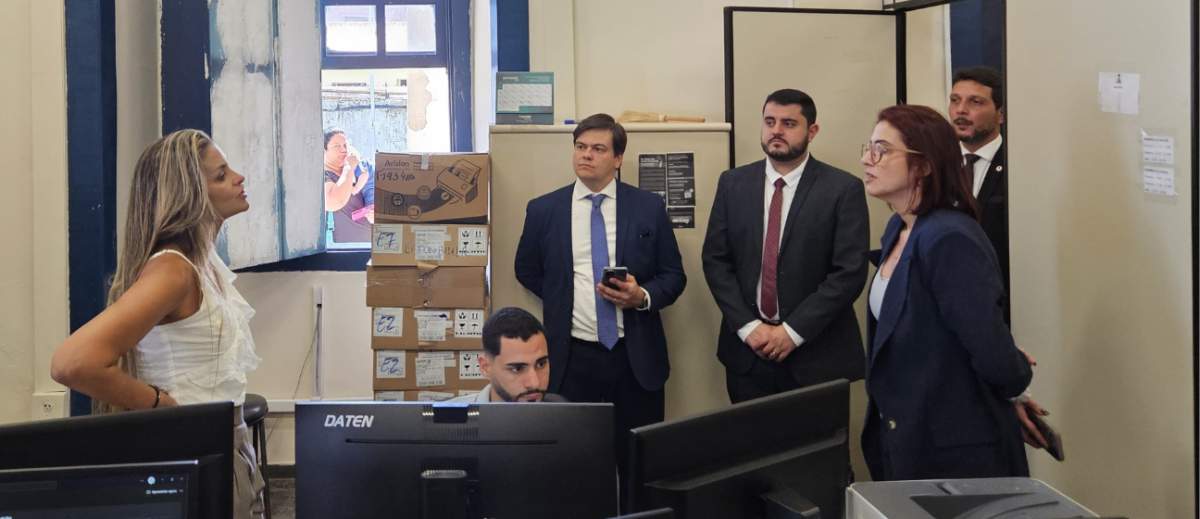 Liderada pela presidente da Comissão de Celeridade Processual (CCP) da OABRJ, Carolina Miraglia, a diligência foi também integrada pelo vice-presidente e pelo secretário geral da CCP, Heitor Pontes e Vinicius Barata; além da presidente, do vice-presidente, da secretária-geral e da secretária-adjunta da OAB/ Campos, Mariana Lontra Costa, Eduardo Linhares, Ludmilla Vaz e Aline Solino, respectivamente; do delegado da Ordem em São João da Barra Franklim Fernandes Junior; do subdelegado George Fruzzoni; e do presidente da Comissão de Celeridade Processual da OAB/Campos, Ralph Pessanha do Espírito Santo.
